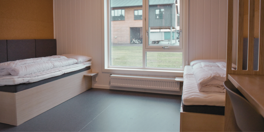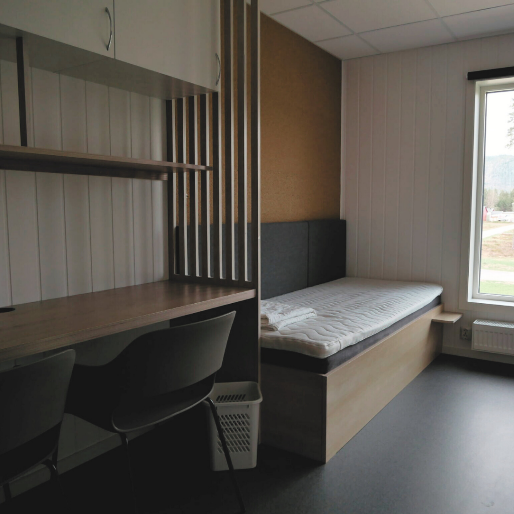 Vi tilbyr lyse, moderne rom med god komfort. Alle rom har eget bad, skrivepult og garderobe. Internatet rommer 102 sengeplasser og har sosiale stuer, vaskerom og heis.
